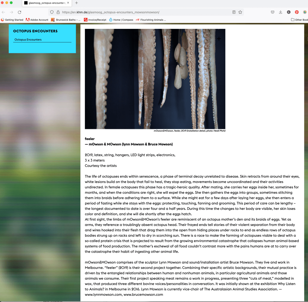 After a little delay due to Covid-19 … our work feeler traveled to Koln and was successfully installed as part of Octopus Encounters: An Immersive Library of Octopus Aesthetics. The exhibition ran for a really long time due to lockdowns.